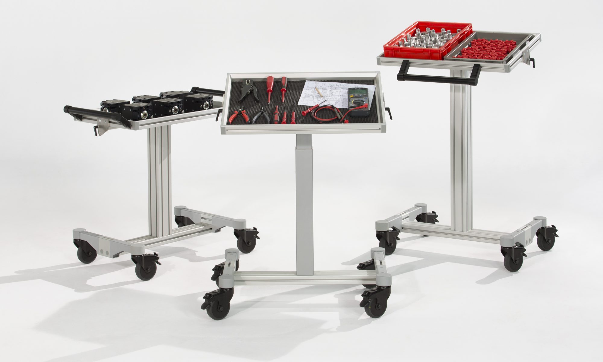 Gleichzeitig steigt mit Flexibilität in der Produktion auch der Anspruch an die Intralogistik. Sie muss, wie die eigentliche Produktion, stets flexibel an neue Gegebenheiten anpassbar sein. Dazu gibt es keine optimalen Lösungen von der Stange. Dafür sind die Anforderungen an einen leichten Laborwagen im Vergleich zu einem großen Transportregal zu unterschiedlich. Mal ist eine nahtlose Integration der Materialbereitstellung in den Arbeitsbereich des Mitarbeiters gefragt, mal muss der Materialwagen gezielt auf den Transport schwerer Bauteile ausgelegt sein. Für die effiziente Produktion in Teamarbeit muss das Material von mehreren Seiten einfach zu erreichen sein, während es bei einem geringen Raumangebot auf möglichst kompakte Maße ankommt. Genau diese Flexibilität bieten wir mit unseren SystemMobilen zum Transport von Kisten, Waren und Werkzeugen. Ausgehend von vier Grundmodellen lassen sie sich bis zu 1,3 Millionen verschiedenen Varianten kombinieren.