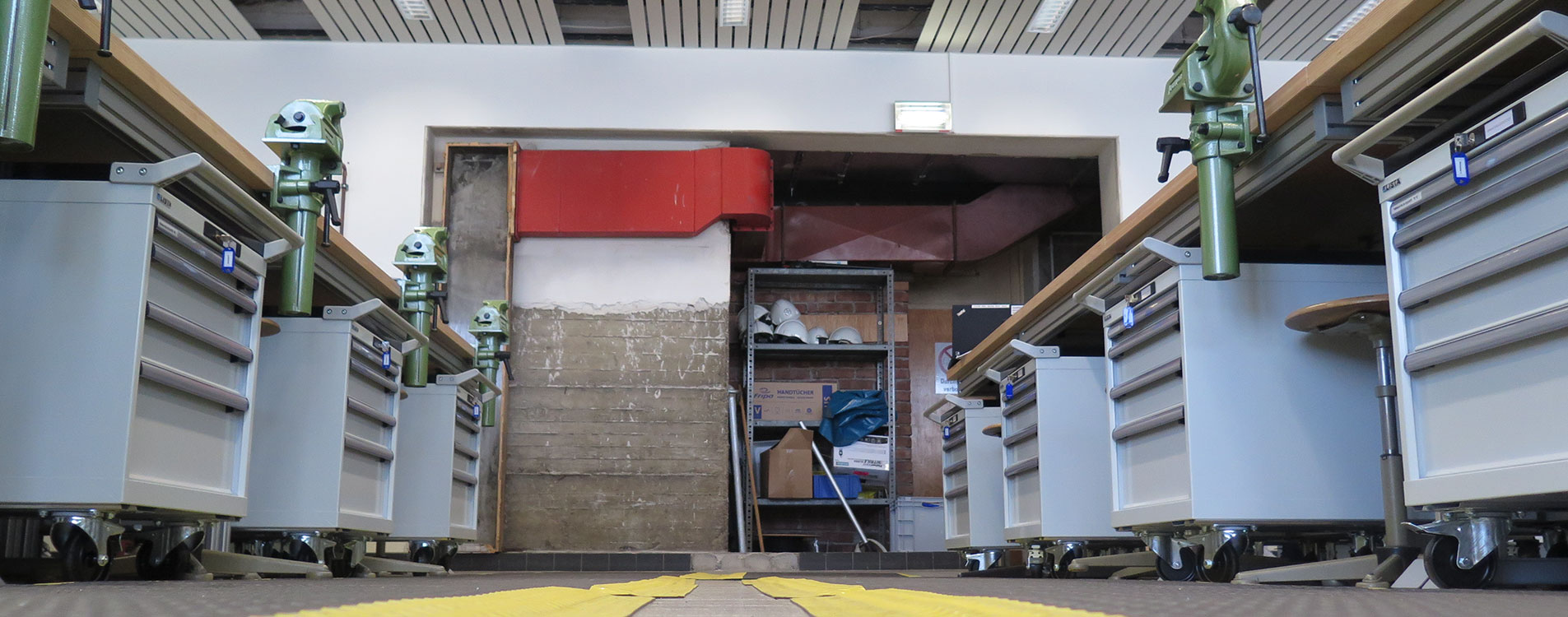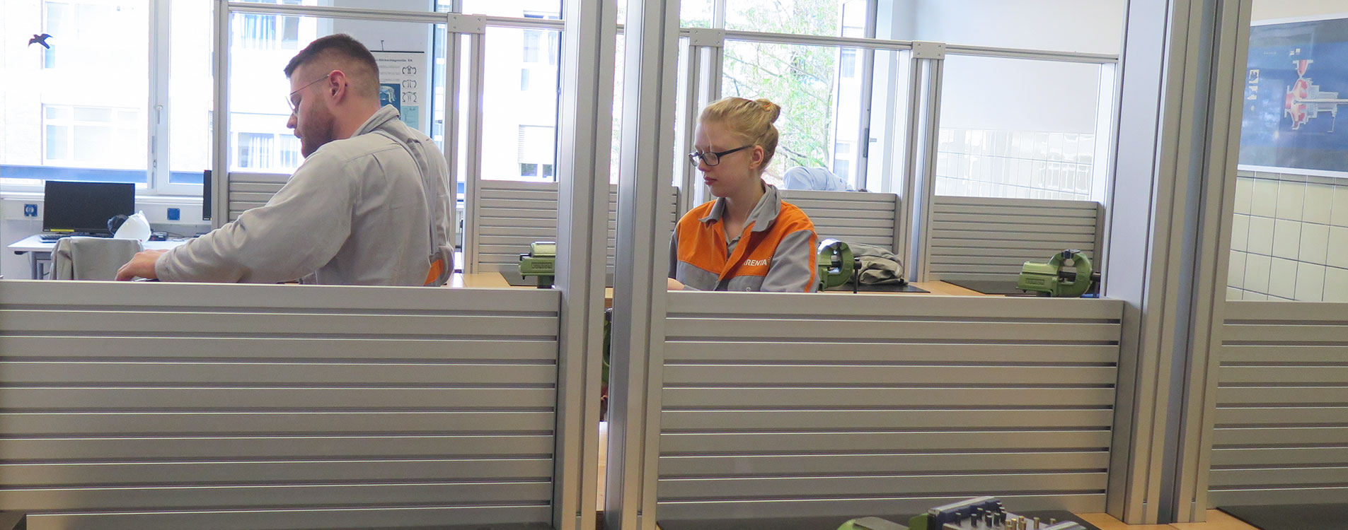 Konkret werden die item Aluminiumprofile auf dem Bildungscampus in drei Anwendungsbereichen eingesetzt: in Arbeitsplätzen für die Mess-, Steuerungs- und Regelungstechnik (EMSR), bei EMSR-Anlagen sowie in speziellen Arbeitsplätzen für eine einjährige Berufsorientierung. Während dieser Orientierungszeit können die Berufsschüler in eine Reihe von Berufen hineinschnuppern. Wer eine Ausbildung als Chemikant absolviert, muss an einer speziell eingerichteten, höhenverstellbaren Werkbank die Werkstoffbearbeitung erproben. Dazu gehören Schritte wie Feilen, Sägen und Schneiden. An den EMSR-Anlagen schließlich werden Regler eingestellt und die Kenngrößen von Anlagen abgenommen.