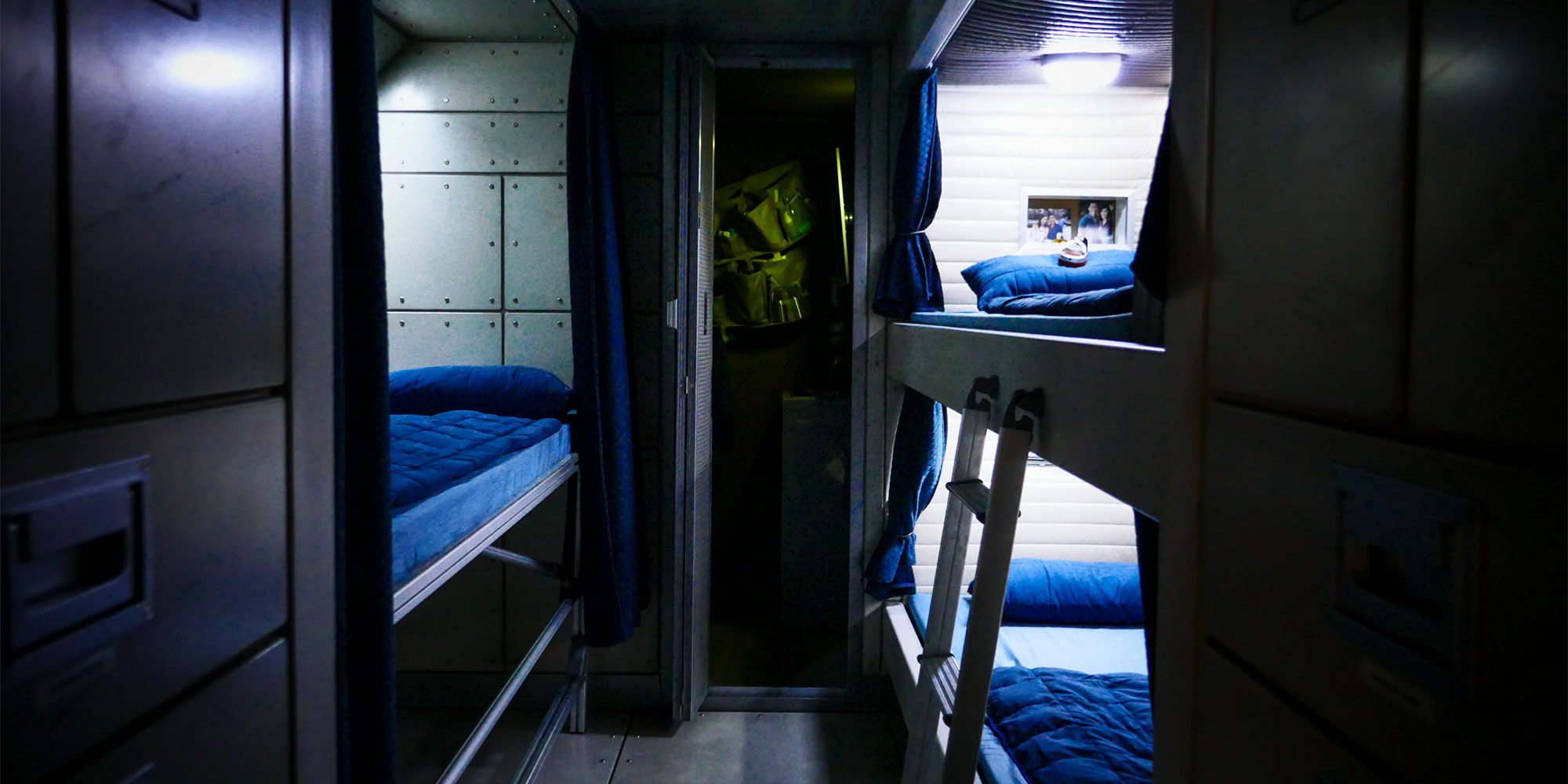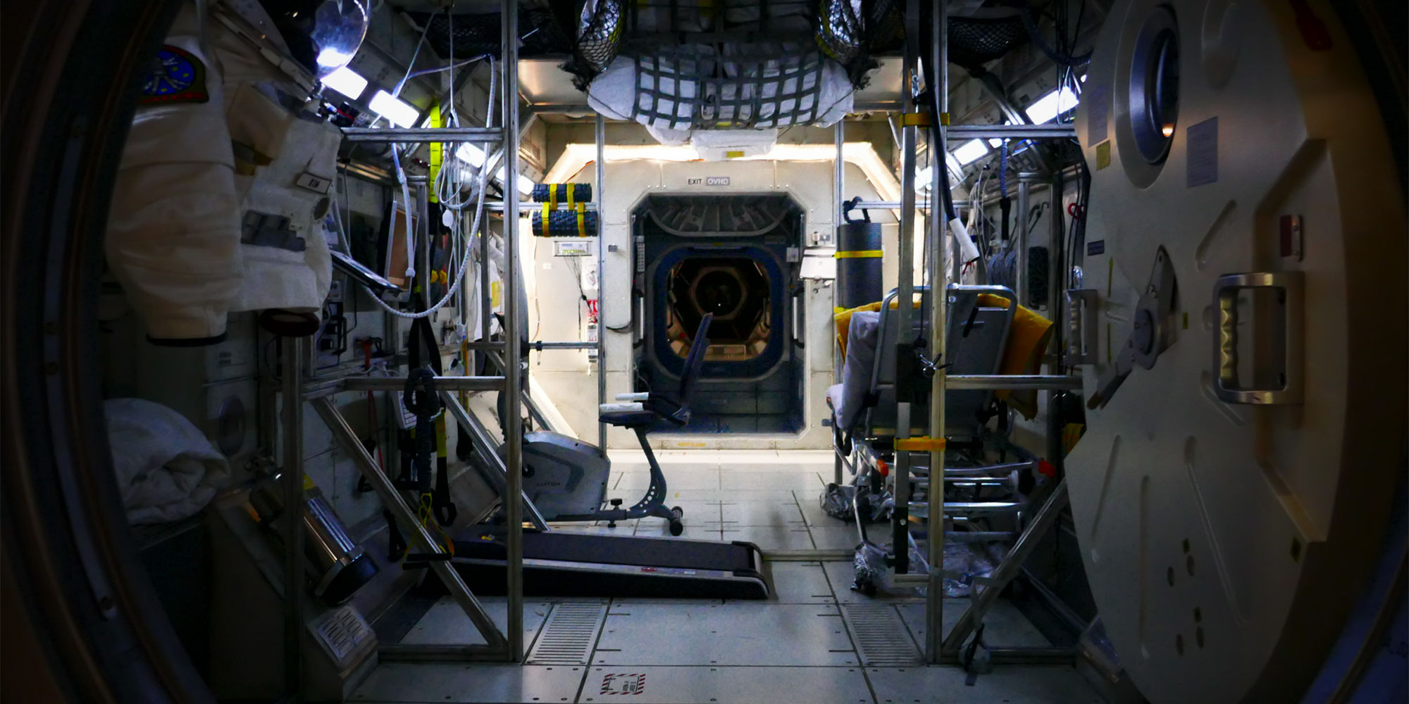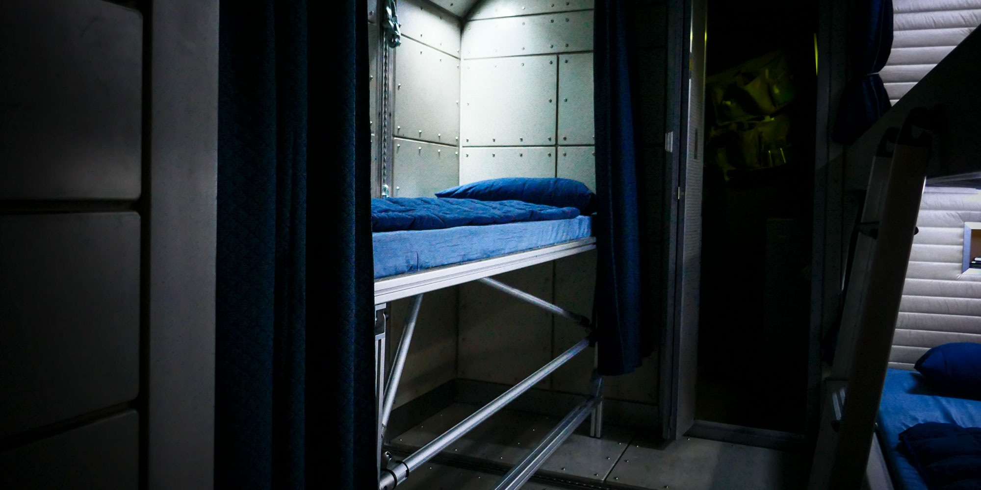 „Auf der Suche nach einem System, das wir modular erweitern und mit dem wir Räume strukturieren können, bot uns item die perfekte Lösung“, sagt Art Director Uwe Stanik. Zunächst hatte man erwogen, Stahlkonstruktionen einzusetzen. Kurzfristige Anpassungen wären damit aber praktisch nicht oder nur mit enormem Aufwand möglich gewesen. Dank der modularen item Profiltechnik konnte die „Stowaway“-Crew die Konstruktionen jederzeit modifizieren. Auf Basis des MB Systembaukastens entstanden Befestigungssysteme für die an die ISS erinnernde Raumstation und sogar komplette Möbelstücke (wie beispielsweise die Betten der Crew) und Treppen. Zudem ließen sich in den Nischen und Deckenvertiefungen des Raumschiffs mithilfe der item Komponenten Leitungen und Kabel integrieren. Rechteckprofile sowie Eck- und Winkelverbindungen kamen bei einer Trennwand im Raumschiff-Cockpit zum Einsatz. Für die Konstruktion eines Grundgerüsts in der Raumstation setzten die „Stowaway“-Macher auf Rechteck- und Rundprofile sowie rund 200 Eck- und 32 Winkelverbindungen. Die aufwendigsten Bauten mit Profiltechnik waren jedoch ein Solar Panel Rig und ein Walkway. Bei diesem Walkway handelte es sich um eine Verbindung zwischen zwei Raumstationen, die sich aus zwei Podesten und einem Gang zusammensetzt. Hierfür wurden die stabilen Profile 8 40×40, natur verwendet, sodass Vibrationen oder Durchbiegungen der Konstruktionen gezielt verhindert wurden.