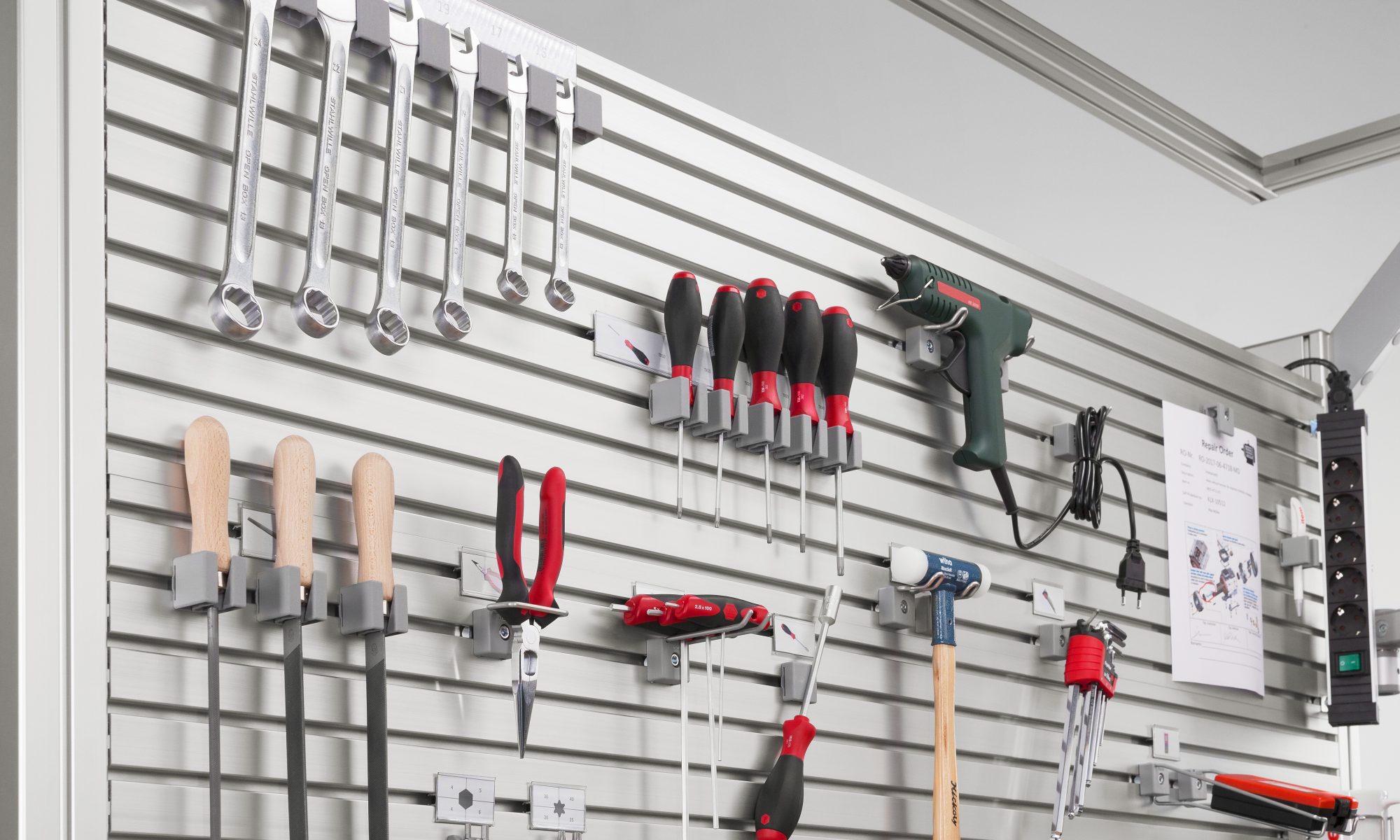 Auf engstem Raum bietet das Aluminium-Nutplattenprofil aus insgesamt 19 Systemnuten auf Vorder- und Rückseite viel Platz für Halter und Zubehör. Mit dem flächigen Aufbau des Nutplattenprofils 8 richten sich die Mitarbeiter einfach und schnell an ihrem Arbeitsplatz ein. Zubehör und Arbeitsmaterialien können individuell in der optimalen Höhe und Anordnung platziert werden. Ob Maulschlüssel, Schraubendreher oder Werkzeug-Bits – nahezu jedes Werkzeug lässt sich an die benötigte Arbeitssituation anpassen. Entsprechende Halter werden vom Mitarbeiter ohne weitere Hilfsmittel direkt in die Nut eingedreht. Ein mit dem item Toolpanelsystem optimal eingerichteter Arbeitsplatz ermöglicht so effizientere Arbeitsabläufe, die zu einer höheren Produktivität führen.