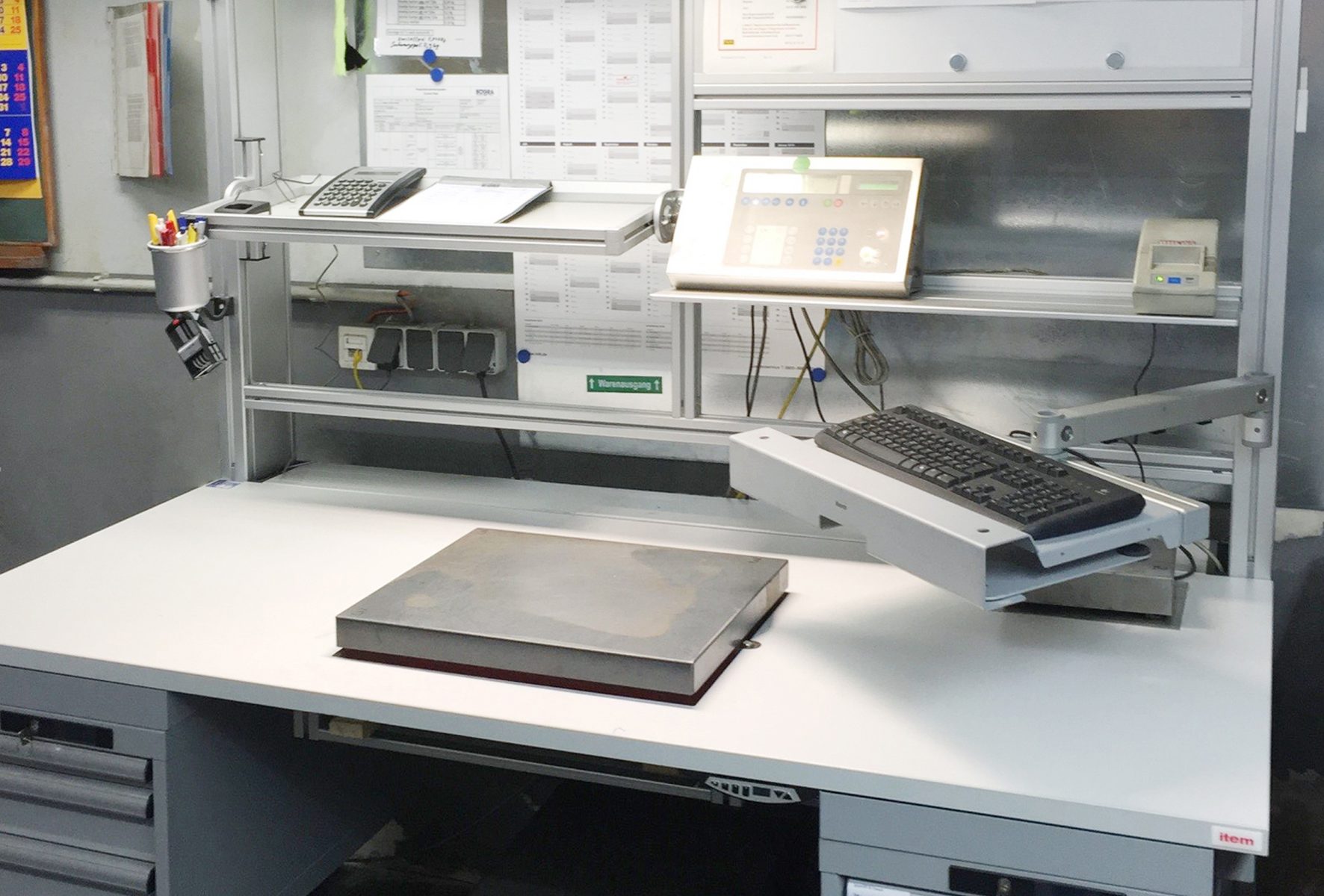 Wegen verschiedener Erkrankungen verfügt ein Mitarbeiter in der Versandabteilung über einen eingeschränkten Greif- und Bewegungsspielraum. Er ist für das Wiegen von einzelnen Komponenten und bis zu 30 Kilogramm schweren Kartons zuständig. Daher hätten typische Bewegungen in seinem Arbeitsalltag schmerzhafte Belastungen mit sich gebracht. Gerade beim Anheben von schweren Kartons und längerem Halten in ein und derselben Position wäre dies der Fall gewesen. Nun war eine moderne Lösung gefragt, um ihm durch einen individuell anpassbaren Versandarbeitsplatz die Weiterbeschäftigung zu ermöglichen. Hierbei entschied sich Bögra für unser Arbeitsplatzsystem. In der Planungsphase fanden zahlreiche Vorbesprechungen statt, bei denen sich die Verantwortlichen von Bögra und item intensiv mit dem betroffenen Mitarbeiter austauschten.