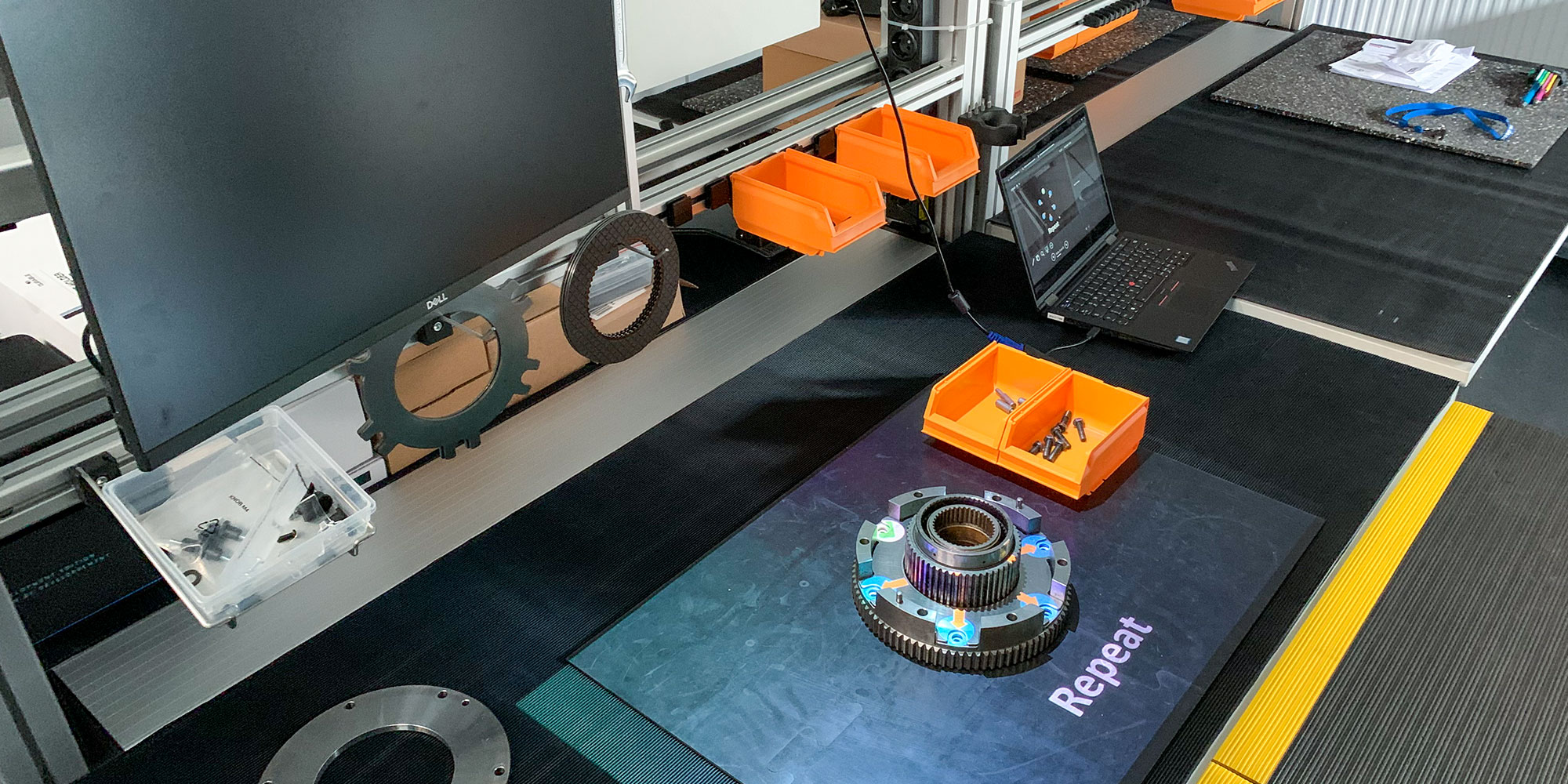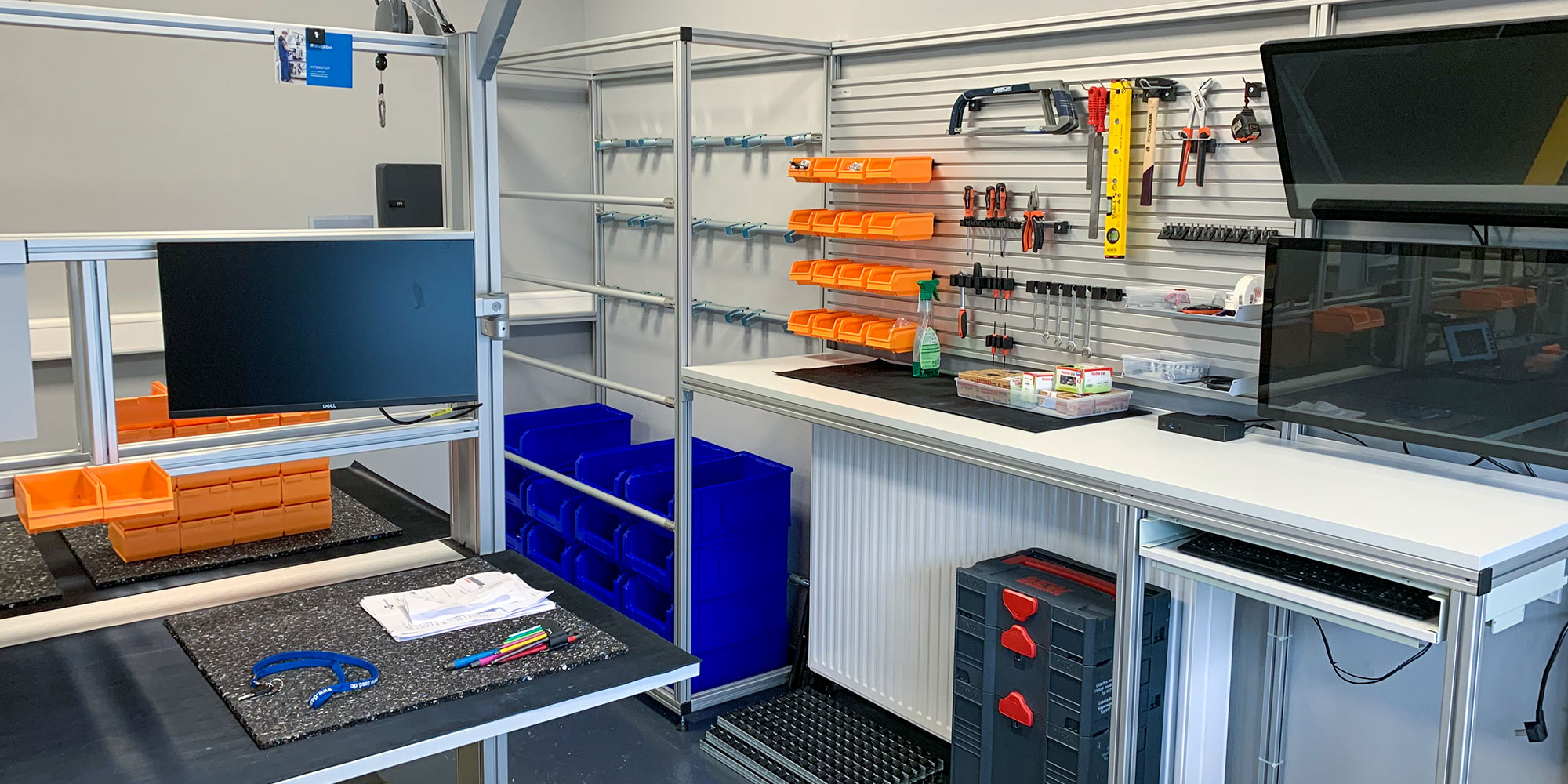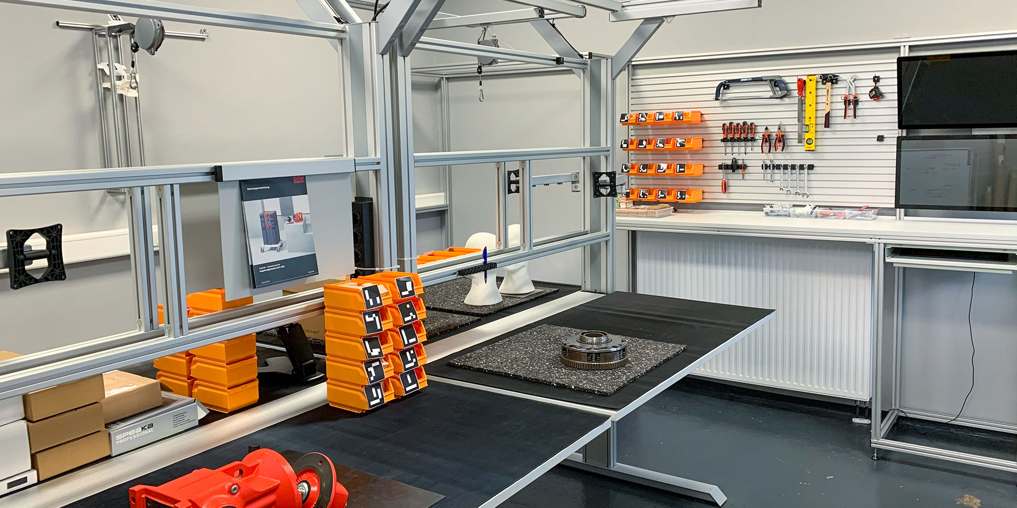 Das erste im AIXLAB abgebildete Test- und Demonstrationsfeld stellt die manuelle Montage dar. Mit Unterstützung von item wurden vier modulare Montagearbeitsplätze mit ergonomischer Ausleuchtung aufgebaut. Die Modularität der Arbeitsplätze bietet die ideale Grundlage, um den vielfältigen Anforderungen, die mit den Facetten des Experimentierens und Demonstrierens einhergehen, gerecht zu werden. So können die Arbeitsplätze – beispielsweise zur Durchführung von Studien oder für das Testen neuer Erkenntnisse – mit geringem Aufwand angepasst werden. Aktuell befindet sich das Forschungslabor für die Zusammenarbeit von Mensch und künstlicher Intelligenz noch im Aufbau. Dieser verzögert sich aufgrund der Corona-Pandemie (Stand: April 2020).